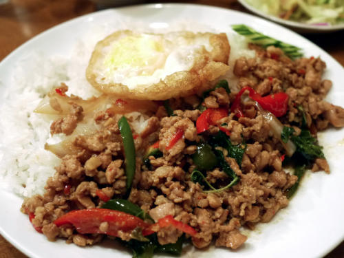 昼飯は客先のキャンティーンにてガパオガイカイダオ。久しぶりに工場で飯を食った。ガパオガイ、カイダオ付きプラスビタミルク付けて35Bってことはそんなに安くはないな。。ただ工場らしく、米に関しては炊きだした釜がででんと置いてあり、セルフで盛り放題だった。