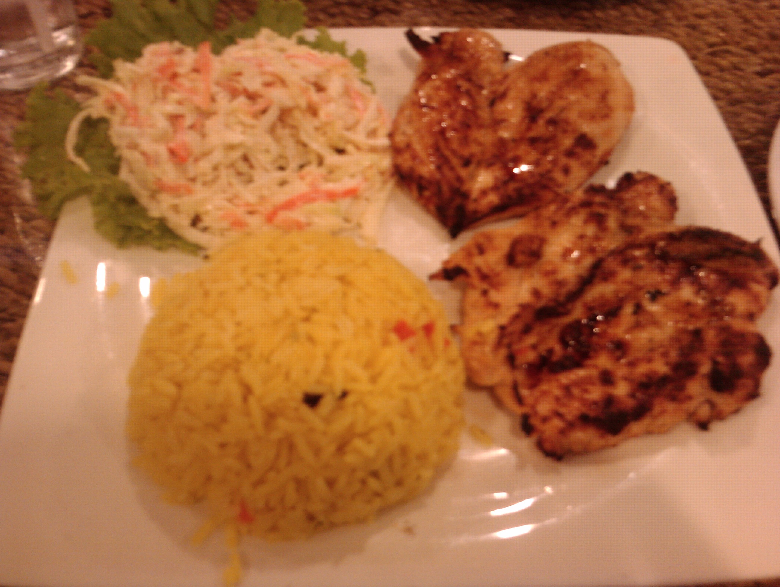 昼飯。今年最後のシーロムでの昼飯。どうしようか迷ったものの独りレバノンに決定。レバノン料理のBeirutへ。BBQチキン。ストイックに鳥の胸肉二枚という肉々メニュー。イケてるなあ。ただ肉を焼いただけがウマイ、こういうのが大好き。