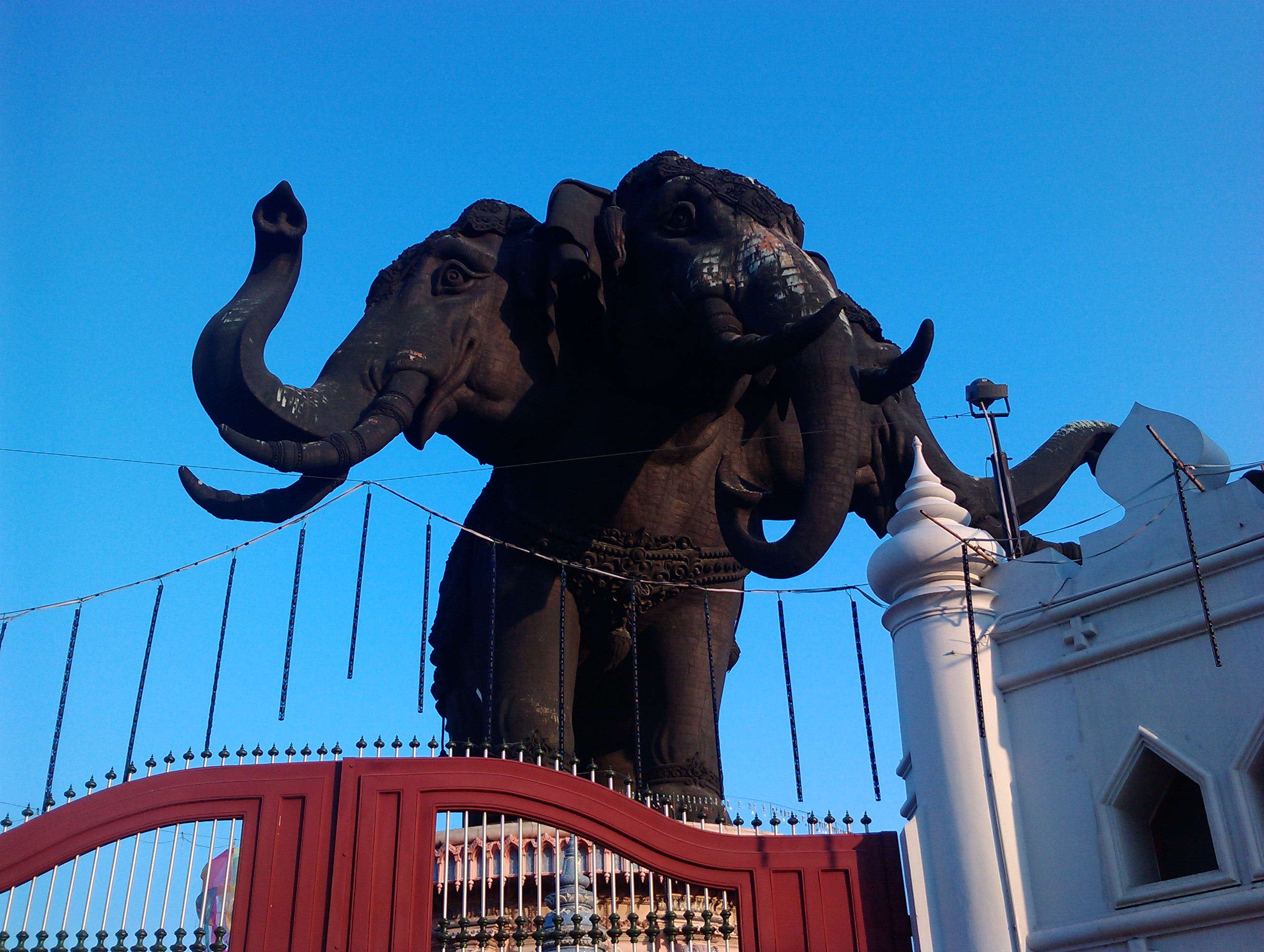 そして女性陣がまだサイアムあたりで買い物をしたいというので僕は「買い物つまらない派」として離脱し、同じく「買い物つまらない派」のうちの親父とともにバンコク周辺をドライブ。チャーンエラワンを見に行って来ました。しかし正月のバンコクは異常なほど道が空いてて午後2時、3時ぐらいの時間でもアソークからシーロムまでわずか5分で着くほどだった。