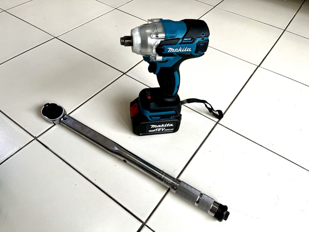 そして初めて使ったインパクトレンチ。電動のレンチの機能に追加で回転方向に打撃を与えることで簡単に強トルクで締め付けやネジを緩めることが出来る。