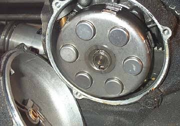 ベスパは独特なパーツを使ってる箇所がいくつかありますが、このクラッチプレッシャープレートを引っ掛けておくためのスプリングが非常に珍妙な形をしている。