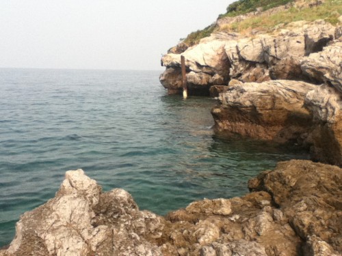 それ以降かからず。。11時ぐらいまでがんばって岩場で釣り、昼飯を食って、暑いので島の西側、タムパンビーチのパラソルの下で仮眠。そして東側船着場で1時間、また西側岩場で2時間ほど釣ったが来なかった。岩場で釣ってるときは他にも日本人2組や現地のタイ人がイカを釣っていたが彼らの竿には3,4回かかっていたのでやはりここはイカは釣れる。結局のところボーズだったが、俄然やる気が増したシーチャン島の釣りでした。