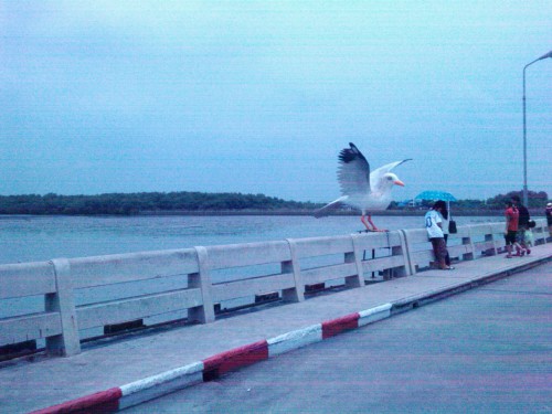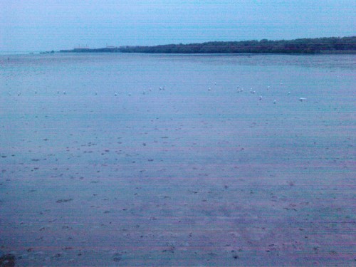 そしてすぐに突堤の端を眺めると泥がこってりと乗っていてハゼだかムツゴロウがポテポテと歩き回っている。さらに突堤の中ほどまで歩いていくと予想通り、一面見渡す限りの干潟!これは釣りはできんなあとがっくりと肩を落としながらも一人で納得。居るのはハゼだかムツゴロウだかとカモメばかり。ちゅうと半端に突堤の中ほどにはカモメの像が立っているが、遠くからカメラで写すとなんか遠近が妙で巨大カモメが欄干に止まっているような。突堤の先にはレストランがあって美しい眺めとともに食事をすることができるとあったが、なんとも20年前の日本の地方の観光地にある薄汚れた食堂のよう。。頭の中に大きな「ハズレ」という文字が浮かびながらトボトボと突堤を引き返して行った。
