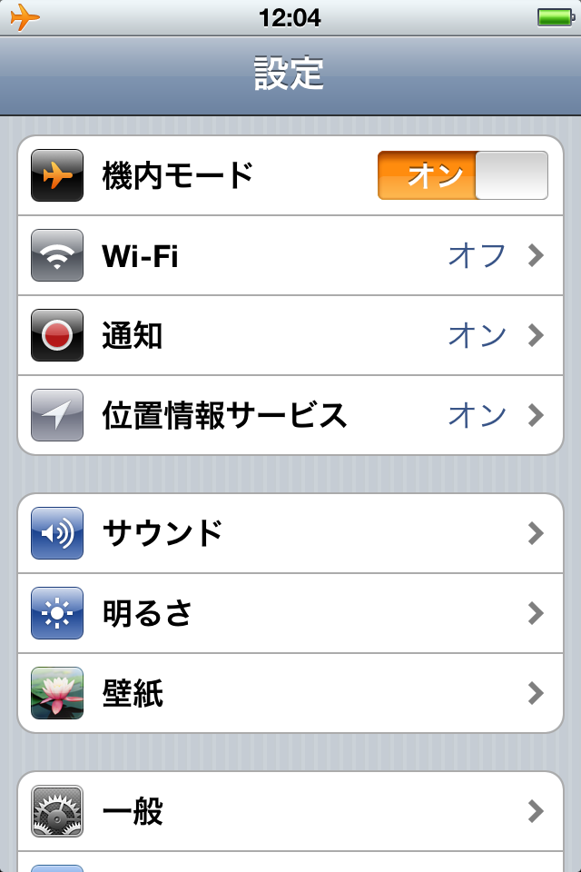 3. 間を空けずに、設定から機内モードに変更。しばらく待つとSIMが挿入されていませんというメッセージが出る。