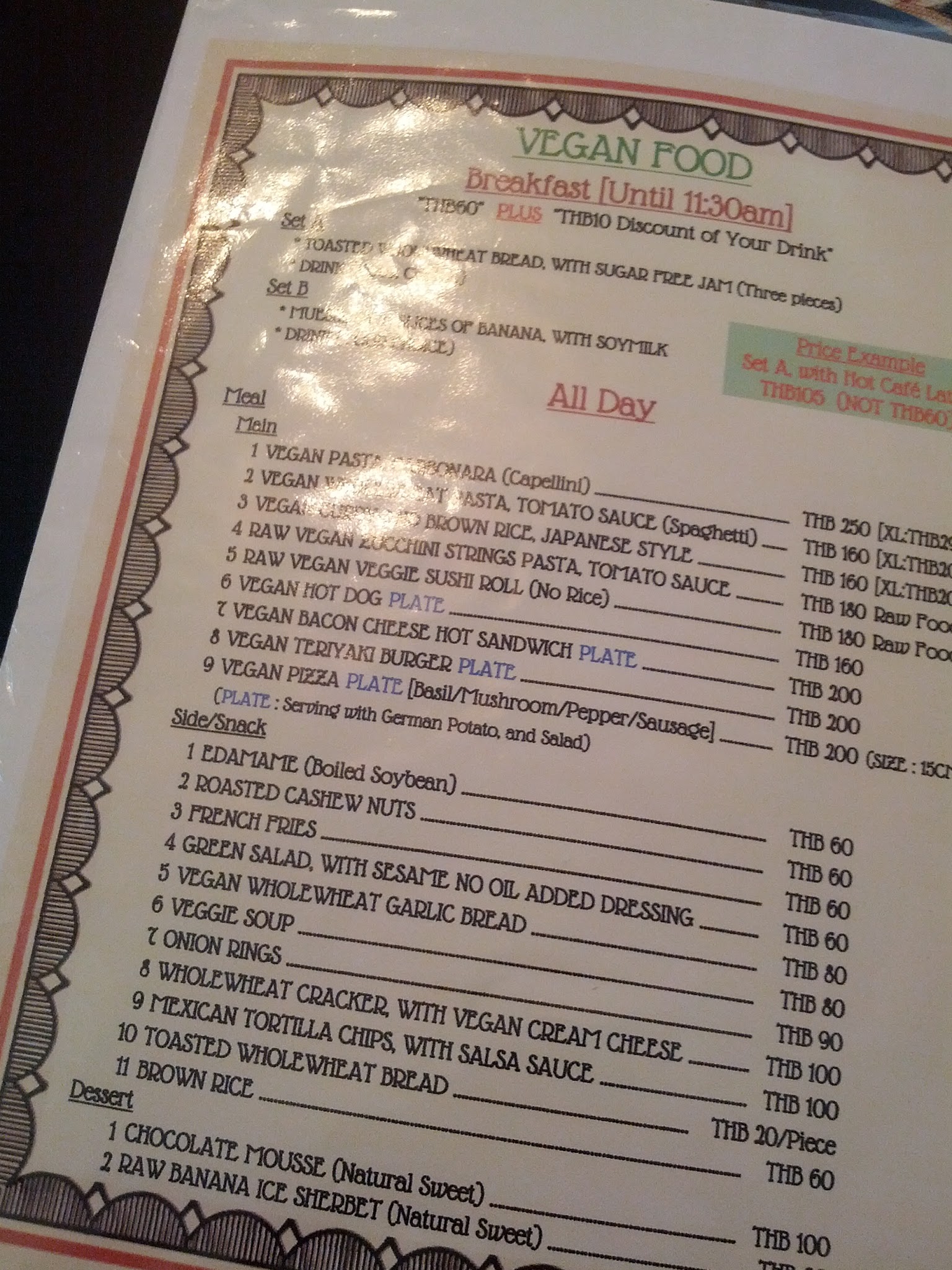 料理のお値段はこんな感じ。割りと手頃な価格感でごわす。Veganカルボナーラとかあったけどチーズ・卵・生クリーム使わずにカルボナーラってできるのか??とりあえず食いたかったVegan Curry RiceとVegetable Soupを注文。後から気づいたらDACOに乗っていたそのままのメニューを注文してしまっていた。ちょっと違うのを頼めばよかったか。