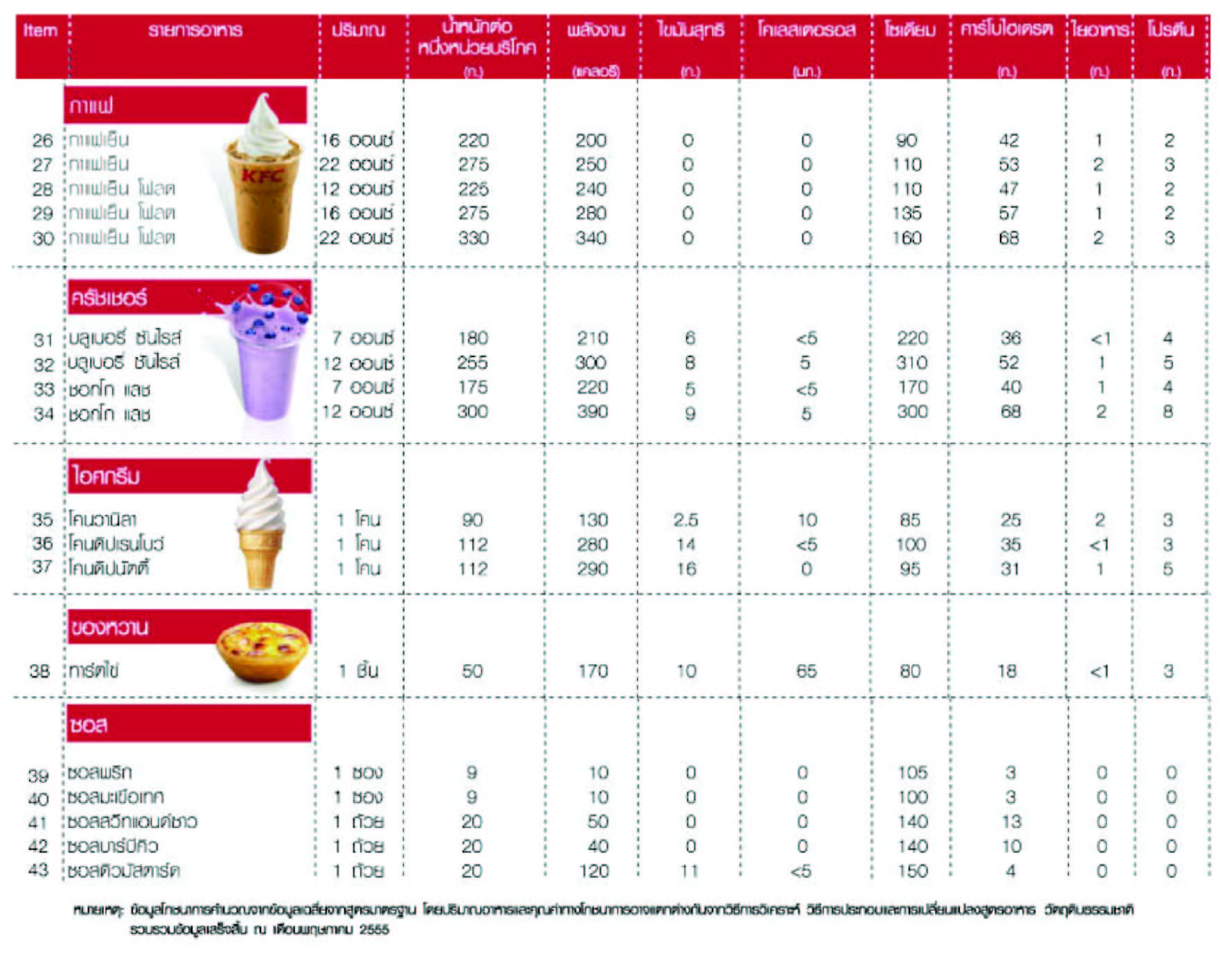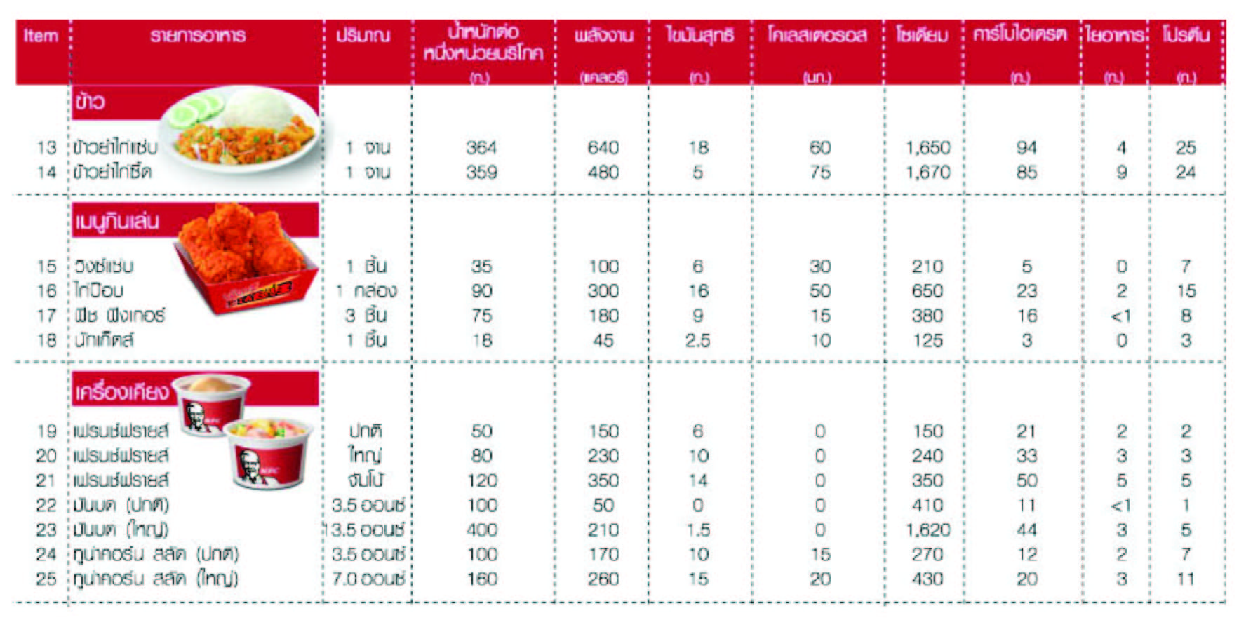 เอาตารางแคลอรี่ของ KFC มาฝากค่ะ (เผื่อใครยังไม่รู้) – Pantip
