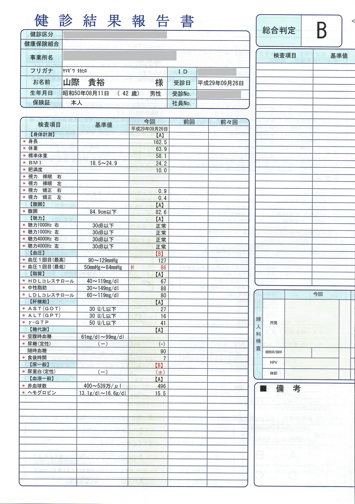 そうそう、日本での就職にあたって法定で雇入れ時検診というのがあるようでちゃんと健康診断を受けてきました。で、いつもどおりその結果をそのままウェブで公開します。
