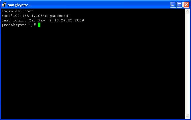 僕の場合はPuttyで。とりあえずインストールしたCentOSのIPアドレスに接続してrootでログインします。