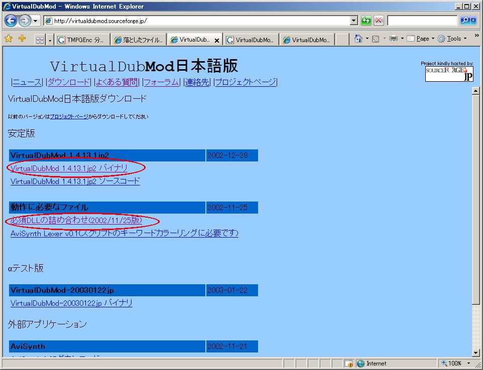 「VirtualDubMod 1.4.13.1jp2 バイナリ」