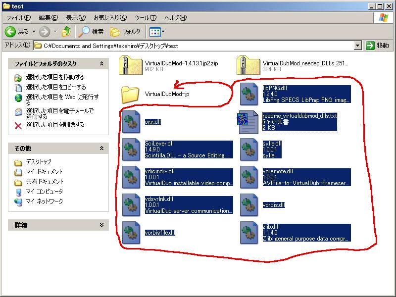 を解凍してできたファイルをすべて VirtualDubMod-jpフォルダ内にコピー。