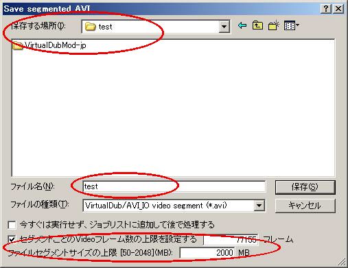 メニューの「AVI」-「AVIをsegmentで出力」をクリック。